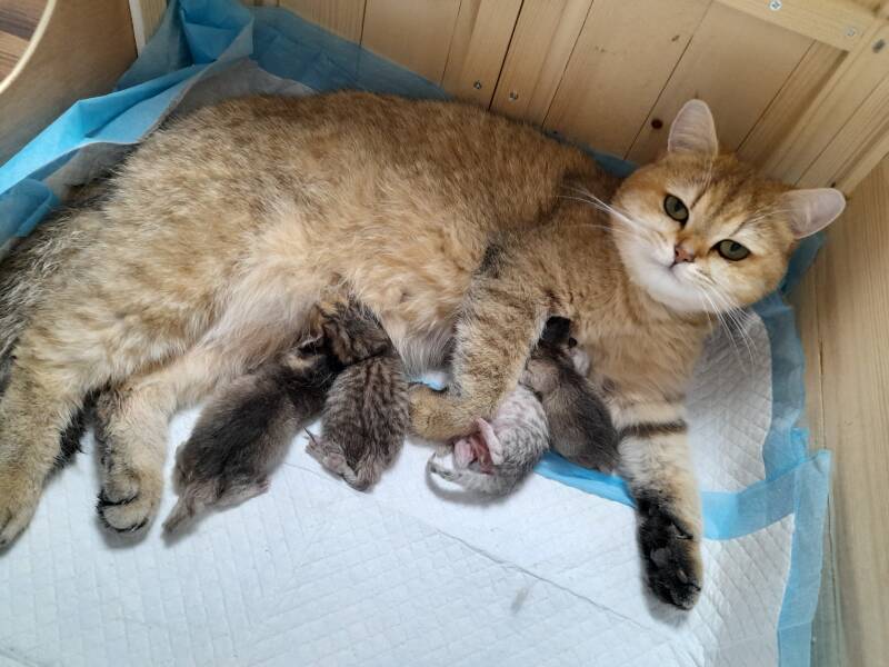 Scarlett hat am 21.03.2023 ihre 4 süssen Kitten ganz ohne Hilfe geboren! 💛